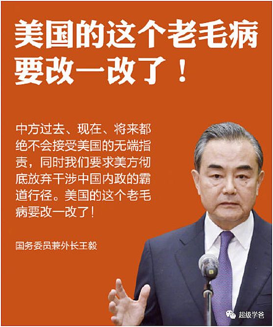 王毅外长也是个补刀小能手,毕竟是家访,发现问题就得唠叨几句,指出了美国的老毛病,也就是搞霸权主义,干涉中国内政。