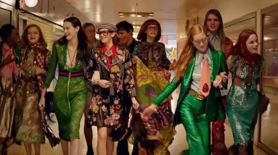 业绩良好的Gucci不甘如此,为了吸引更多的消费者,近来在社交媒体营销上更加的活跃:以外星人模特、Meme艺术等形式通过官方Ins账号推广成衣和腕表,并且顺应“政治正确”的潮流在最新广告中全部启用黑人模特。